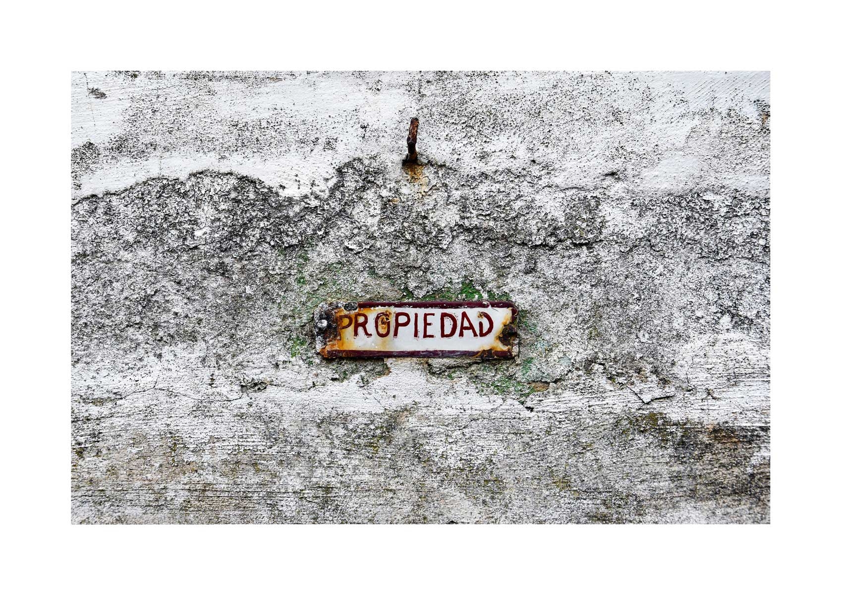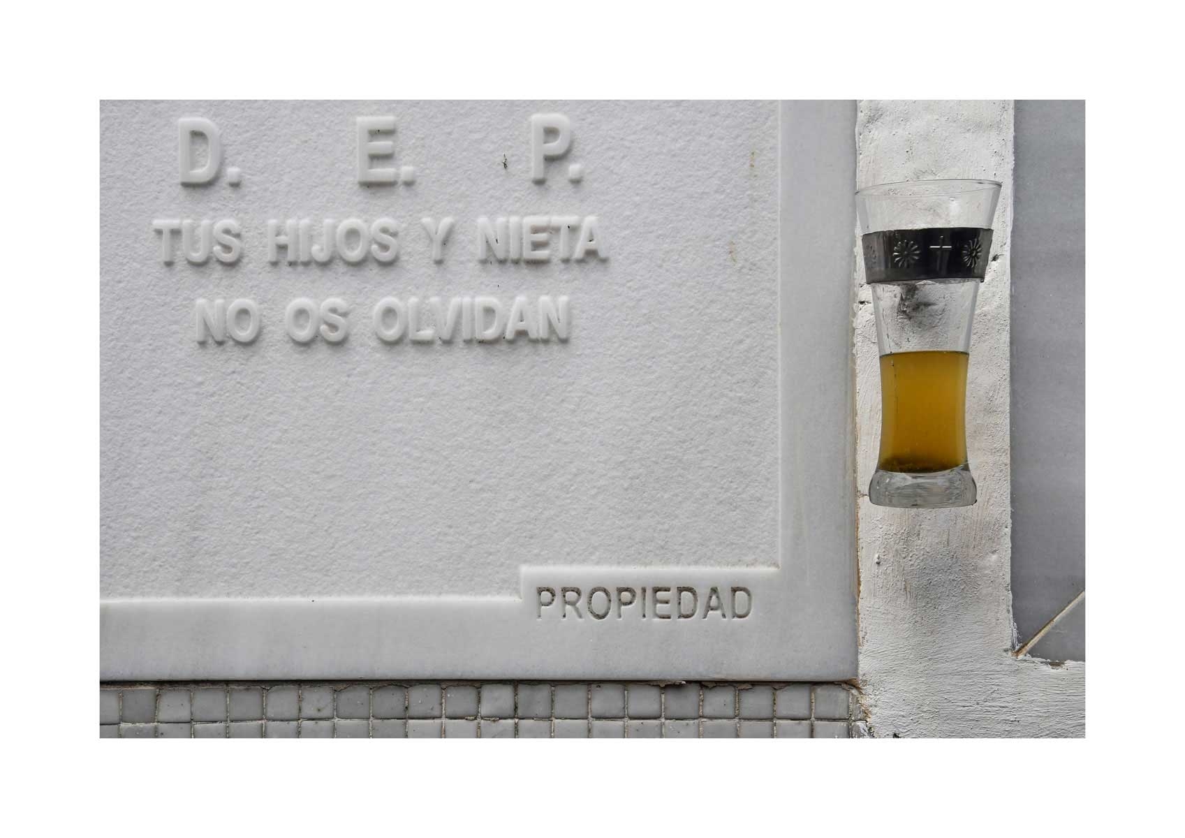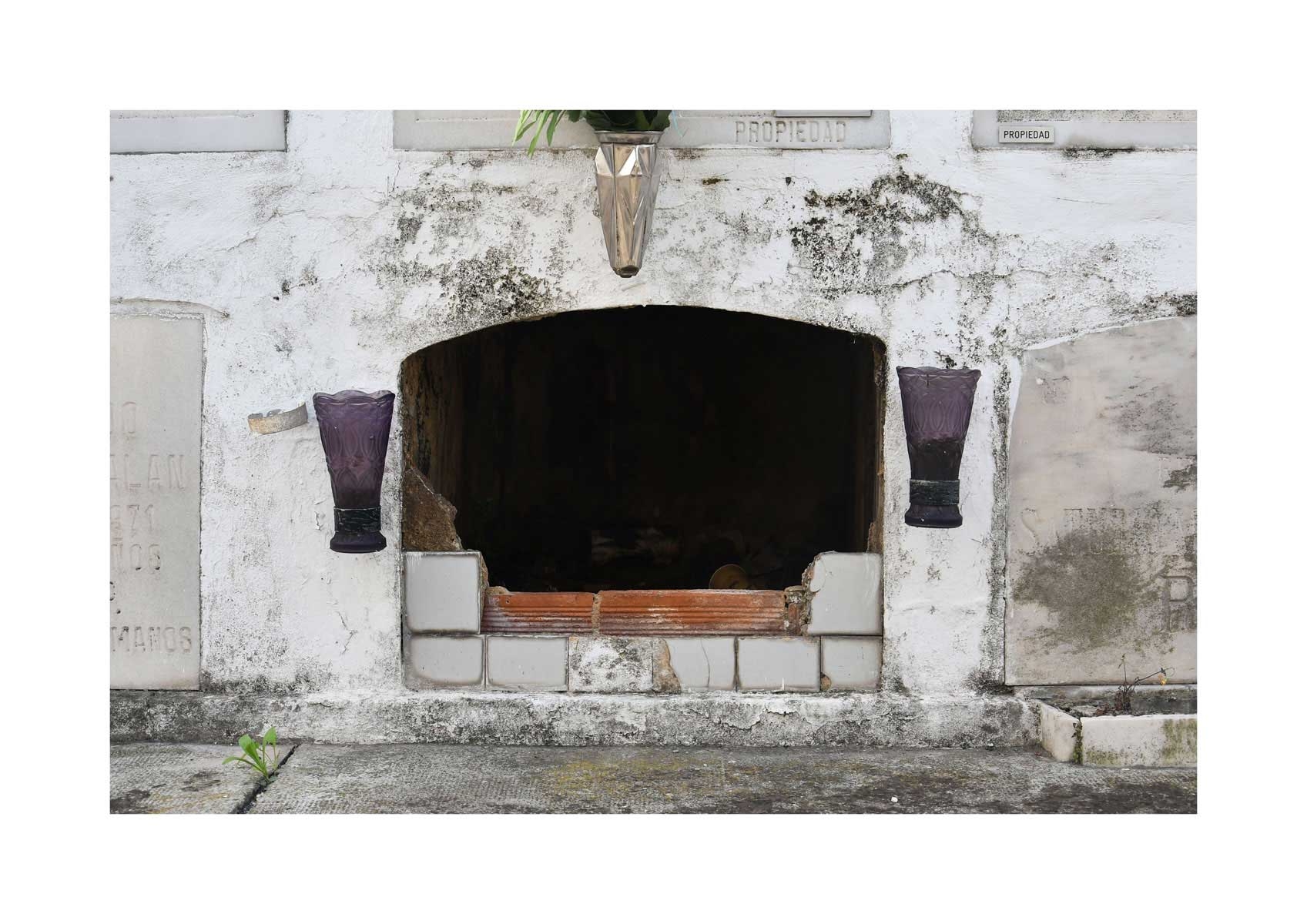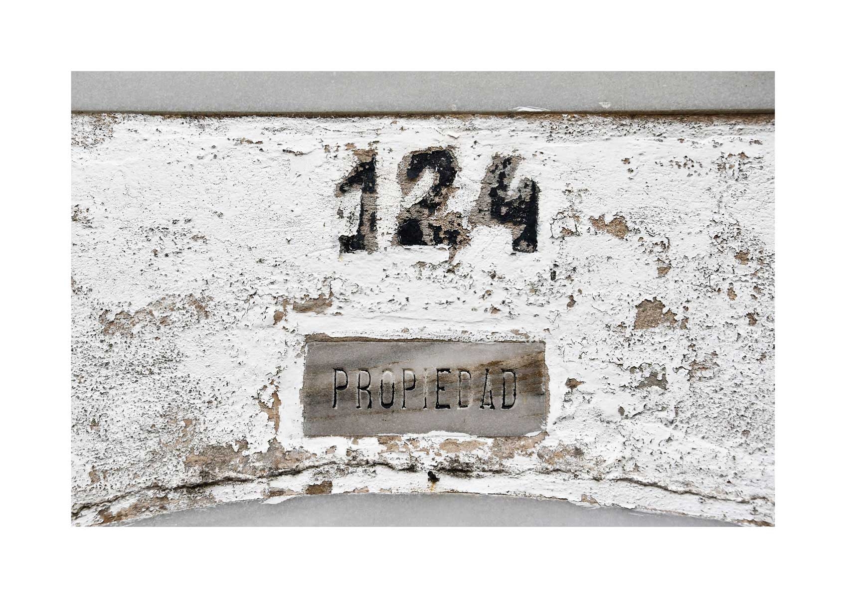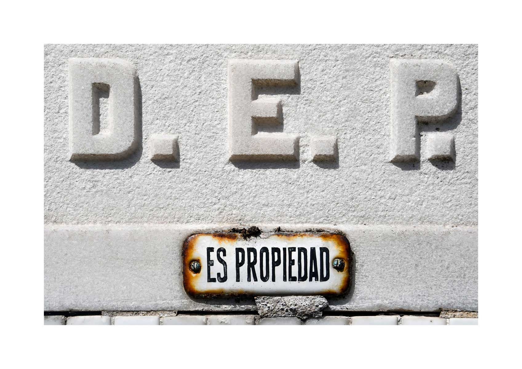 En Propiedad, el artista convierte la palabra grabada en los nichos de un cementerio en un eco de la crisis contemporánea. A través de la repetición del término “propiedad”, la serie revela la ironía de una sociedad que garantiza a los muertos lo que niega a los vivos: un lugar propio.