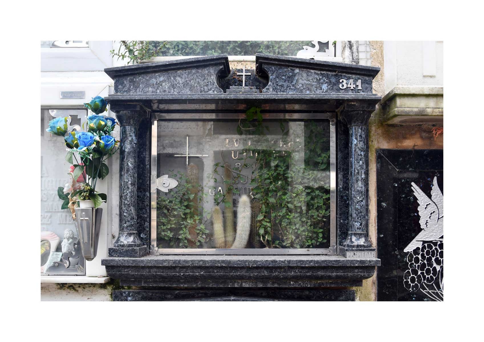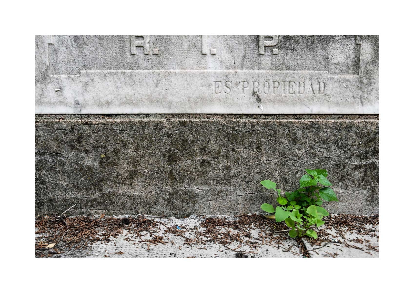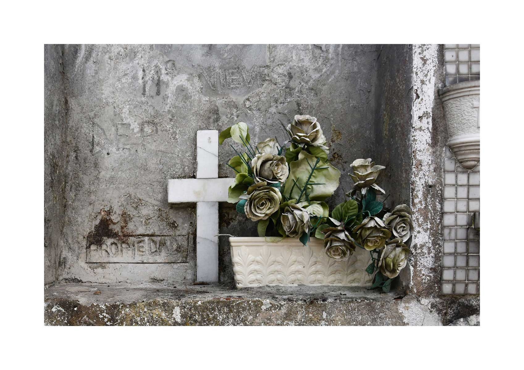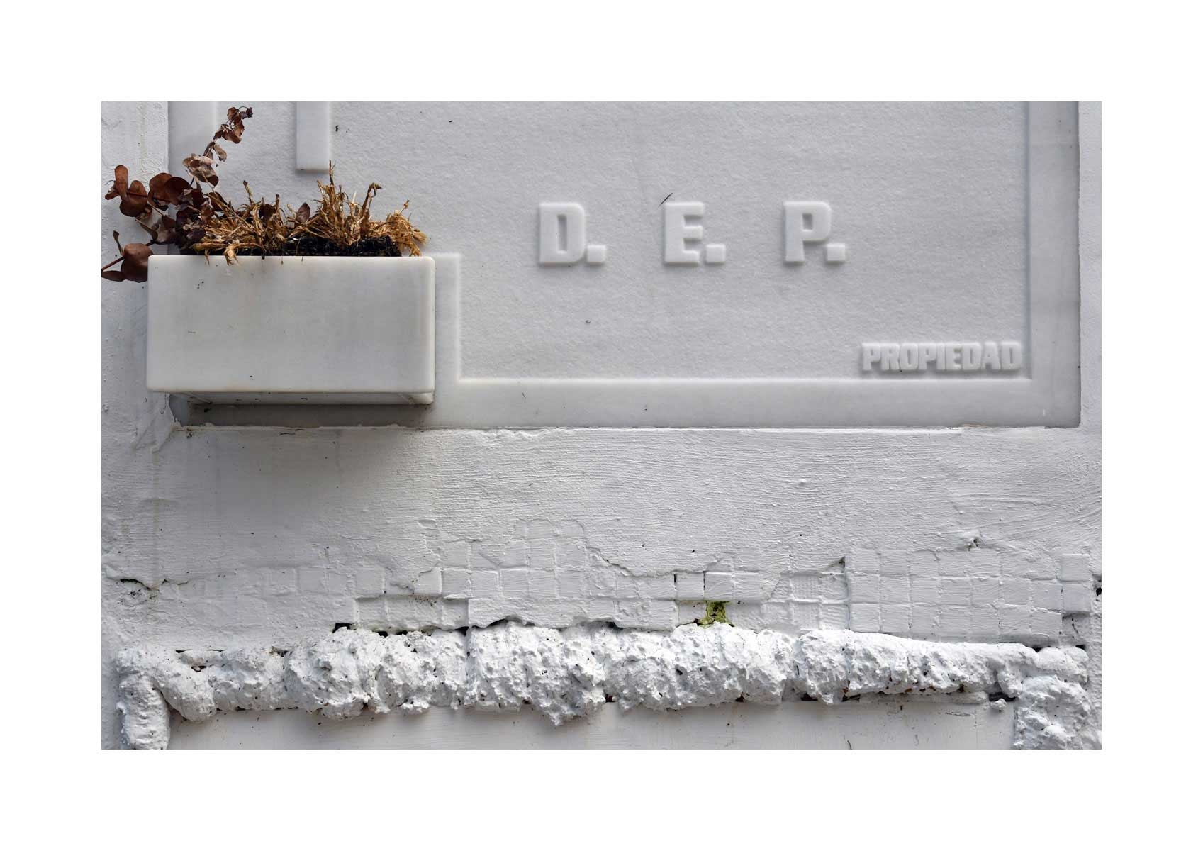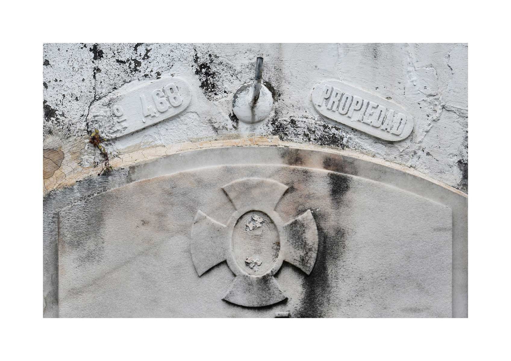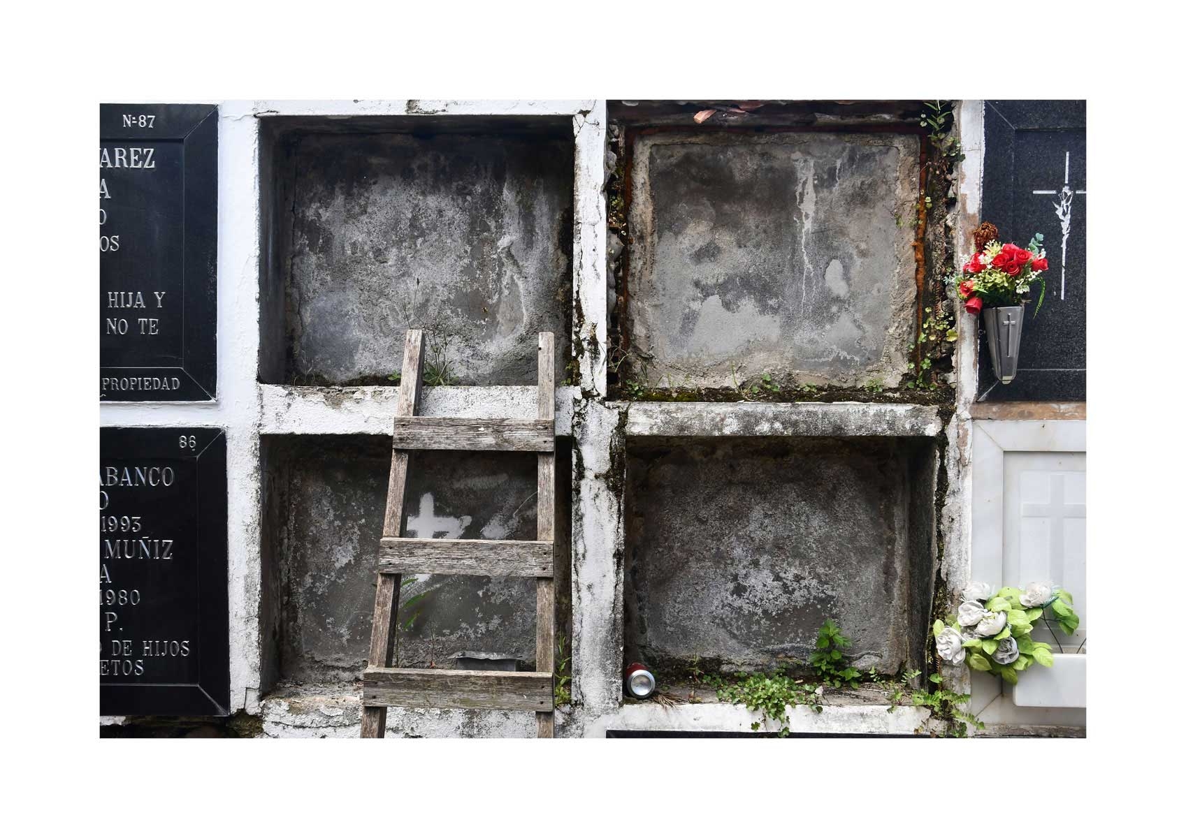 En Propiedad, el artista convierte la palabra grabada en los nichos de un cementerio en un eco de la crisis contemporánea. A través de la repetición del término “propiedad”, la serie revela la ironía de una sociedad que garantiza a los muertos lo que niega a los vivos: un lugar propio.