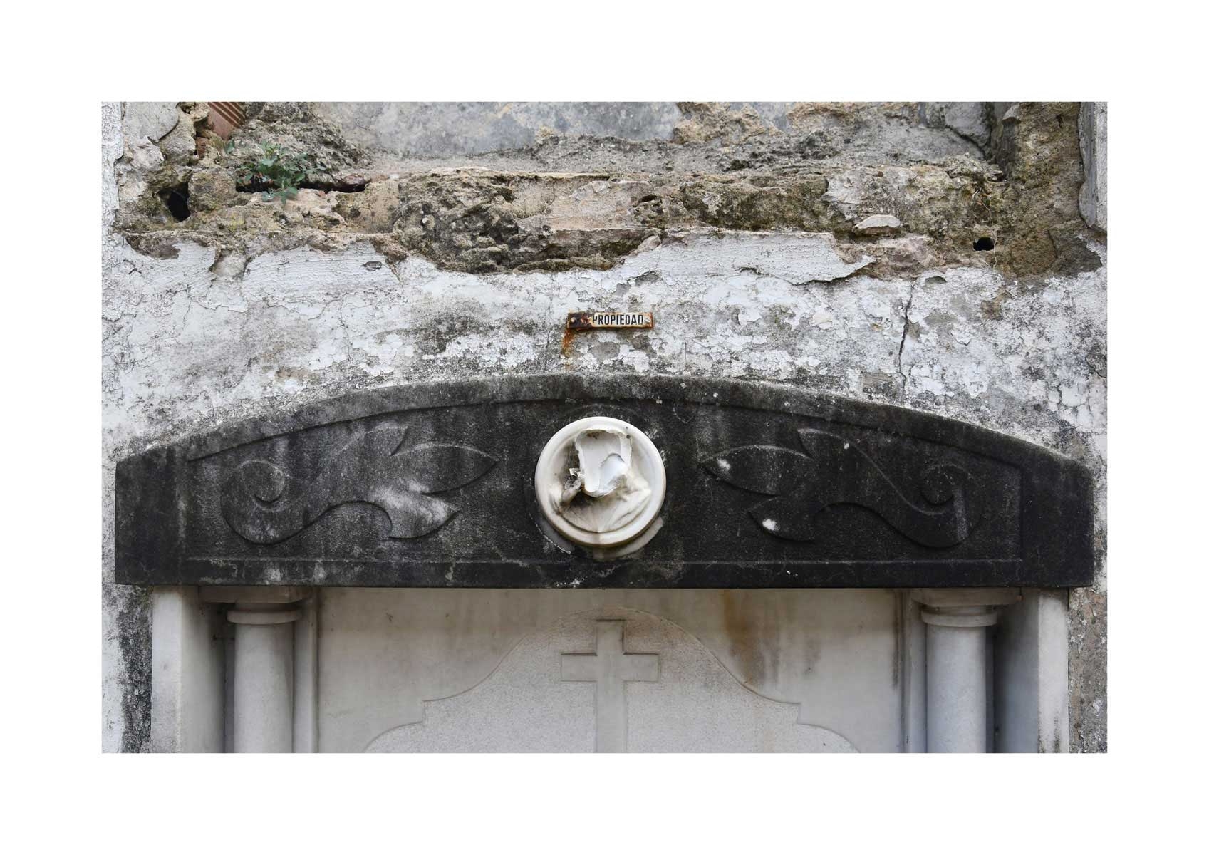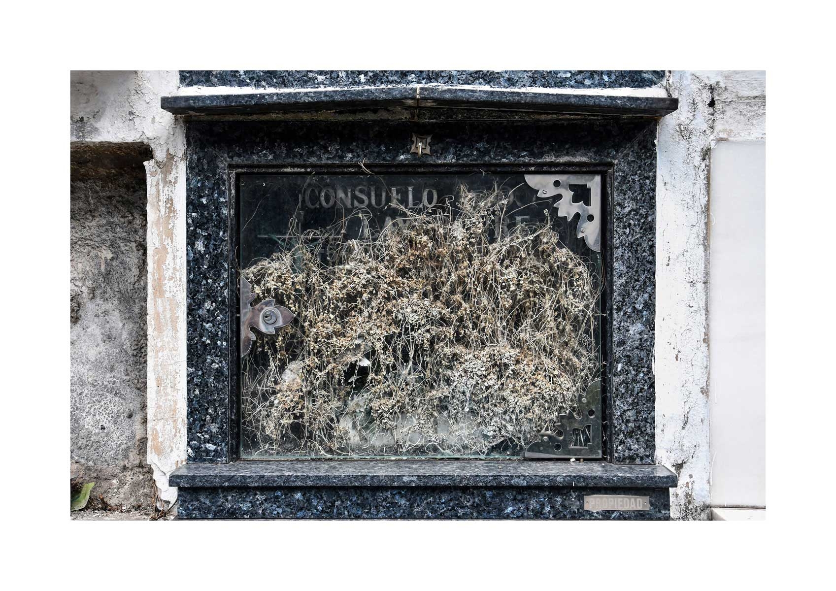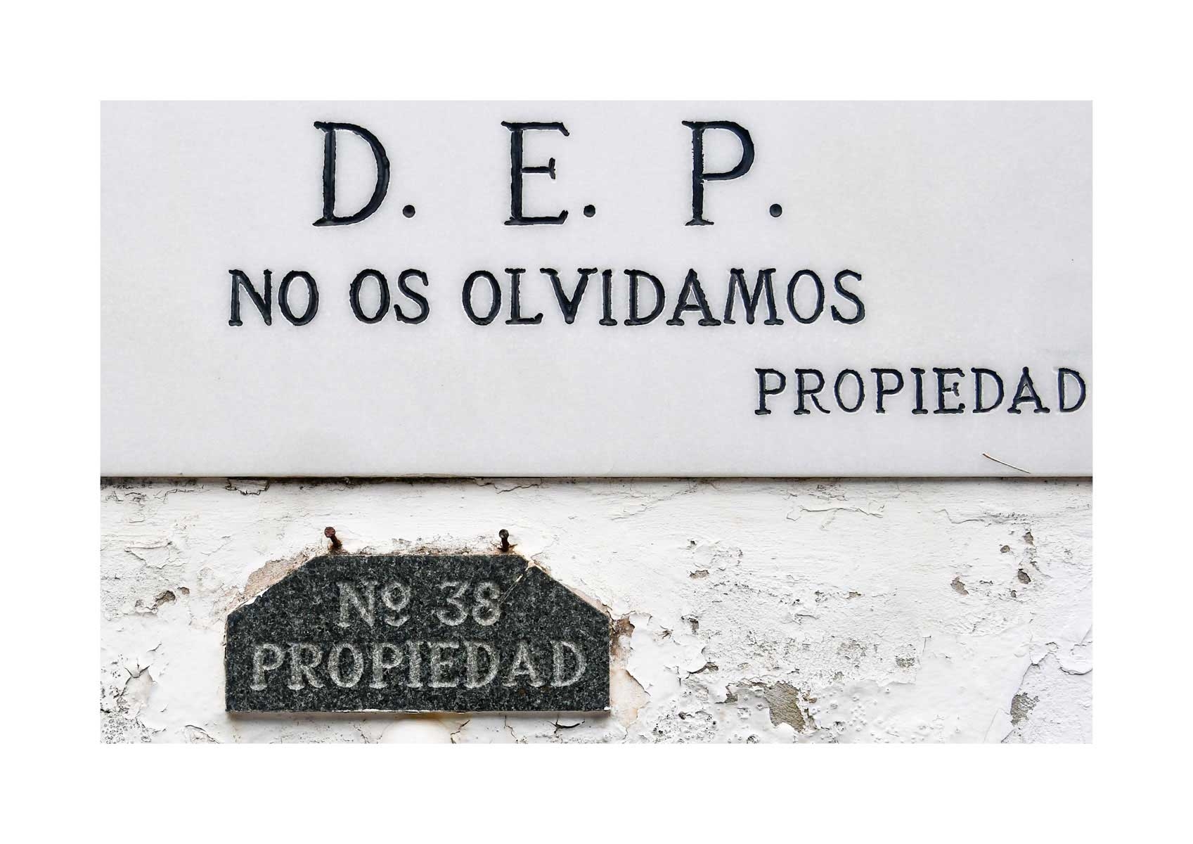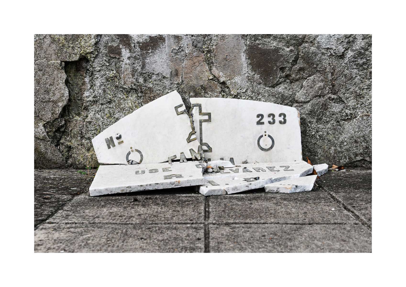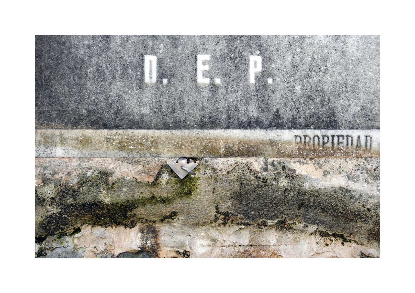 En Propiedad, el artista convierte la palabra grabada en los nichos de un cementerio en un eco de la crisis contemporánea. A través de la repetición del término “propiedad”, la serie revela la ironía de una sociedad que garantiza a los muertos lo que niega a los vivos: un lugar propio.