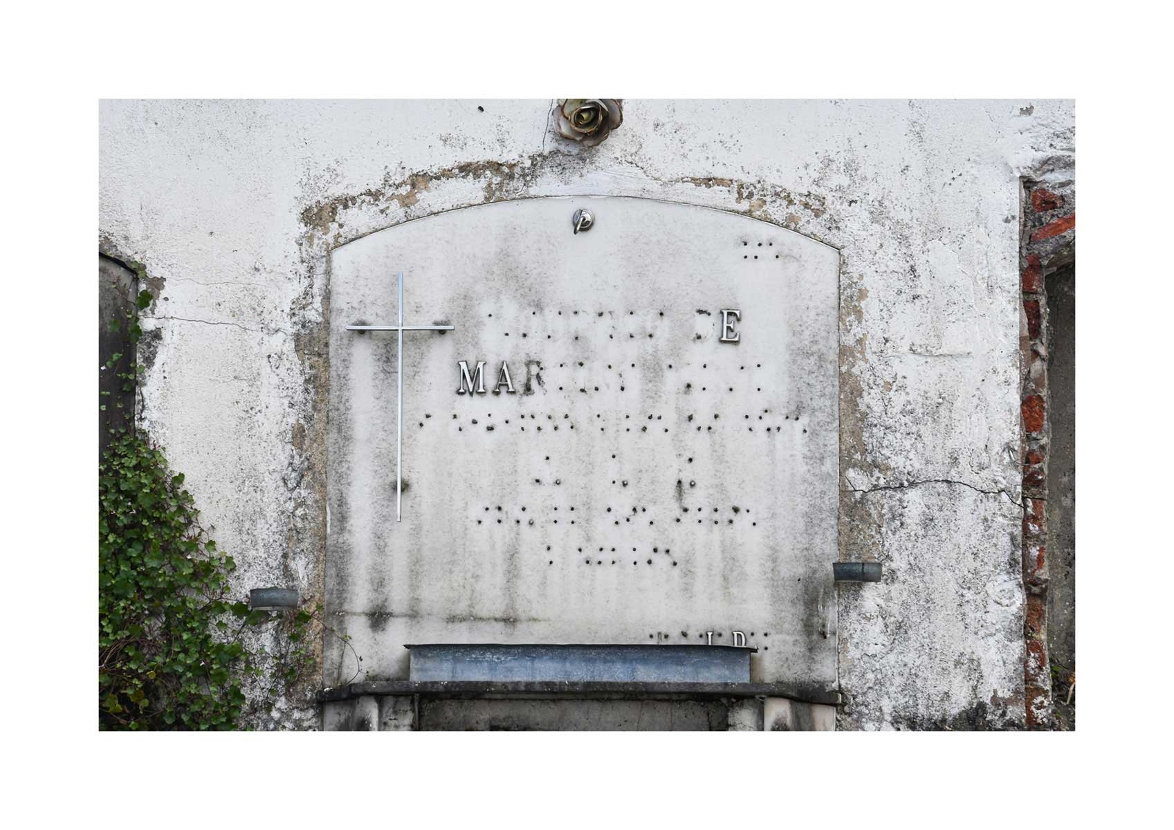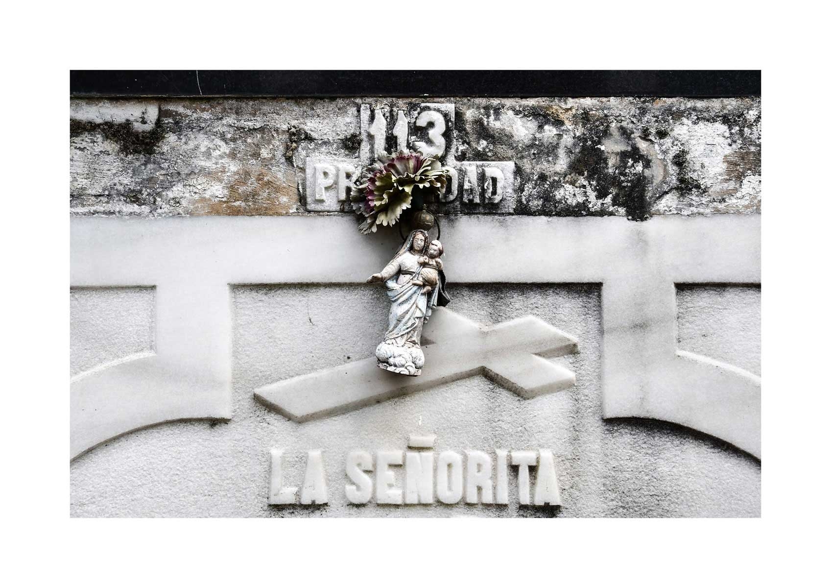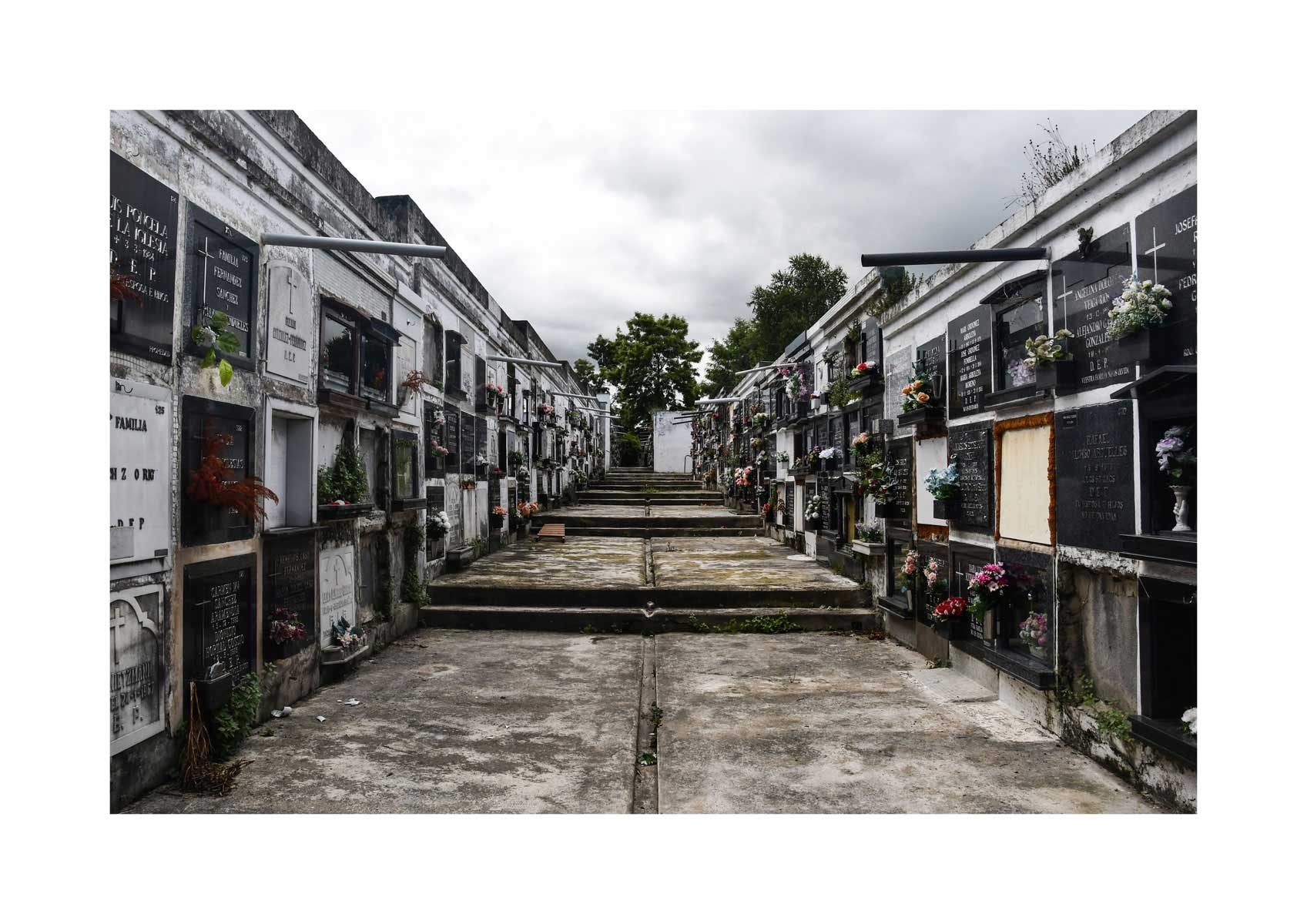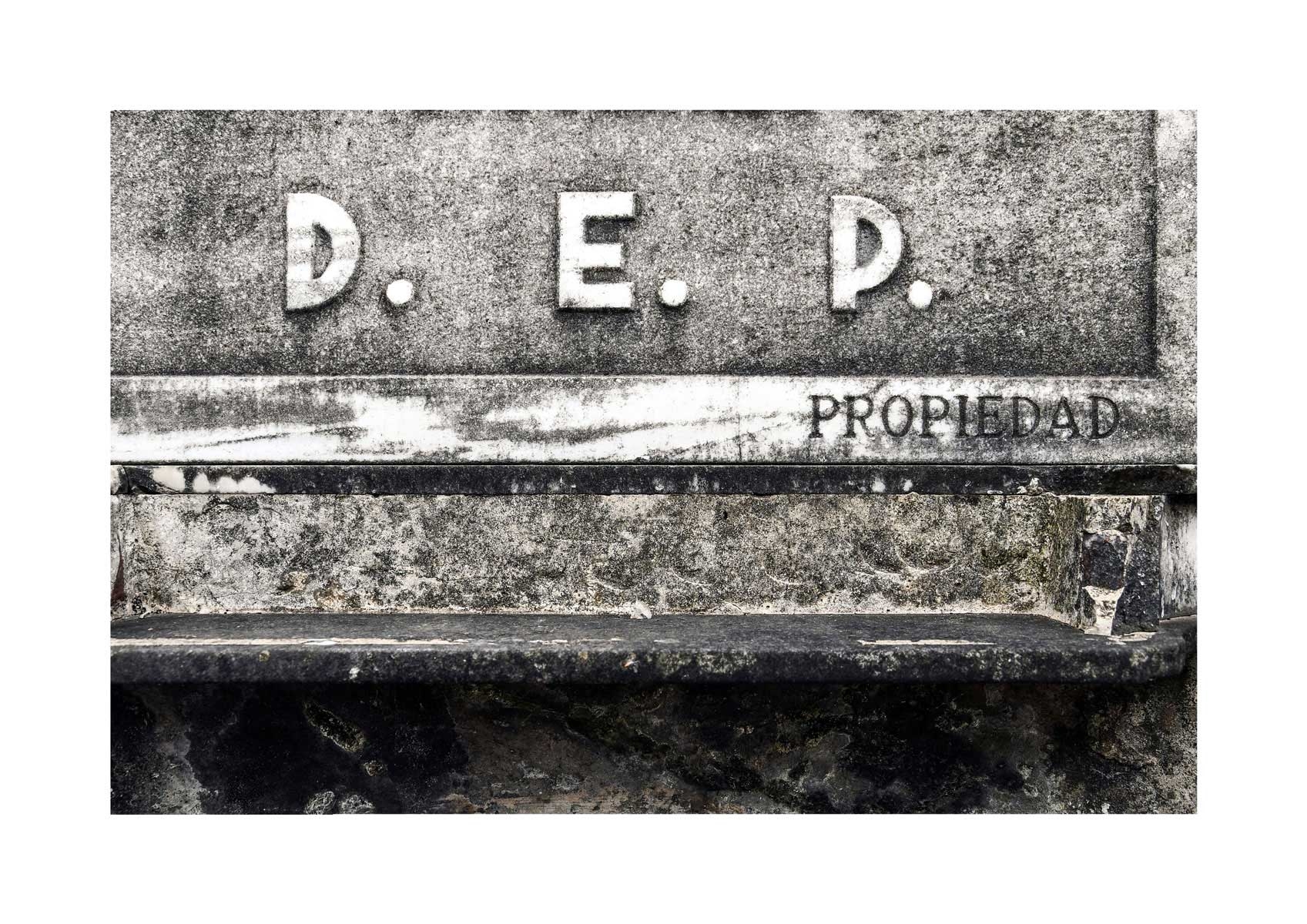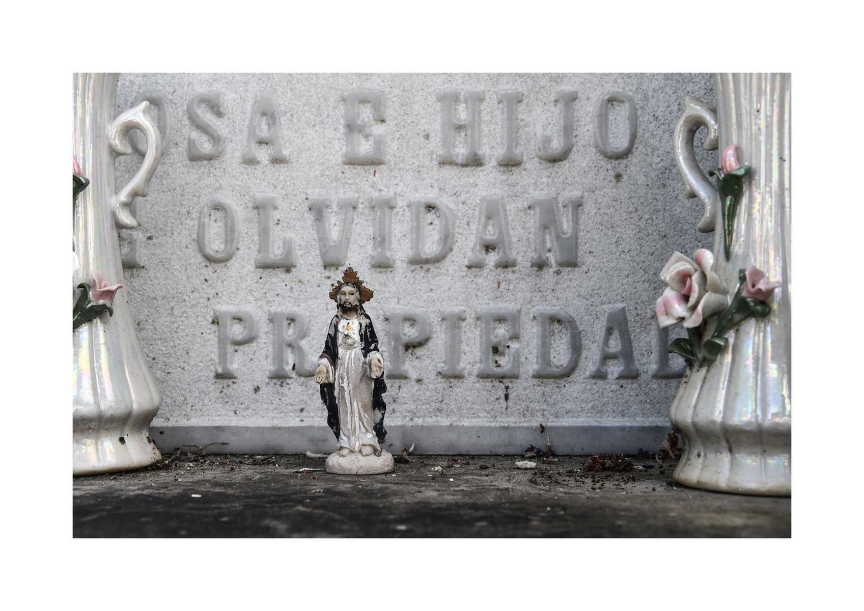 En Propiedad, el artista convierte la palabra grabada en los nichos de un cementerio en un eco de la crisis contemporánea. A través de la repetición del término “propiedad”, la serie revela la ironía de una sociedad que garantiza a los muertos lo que niega a los vivos: un lugar propio.