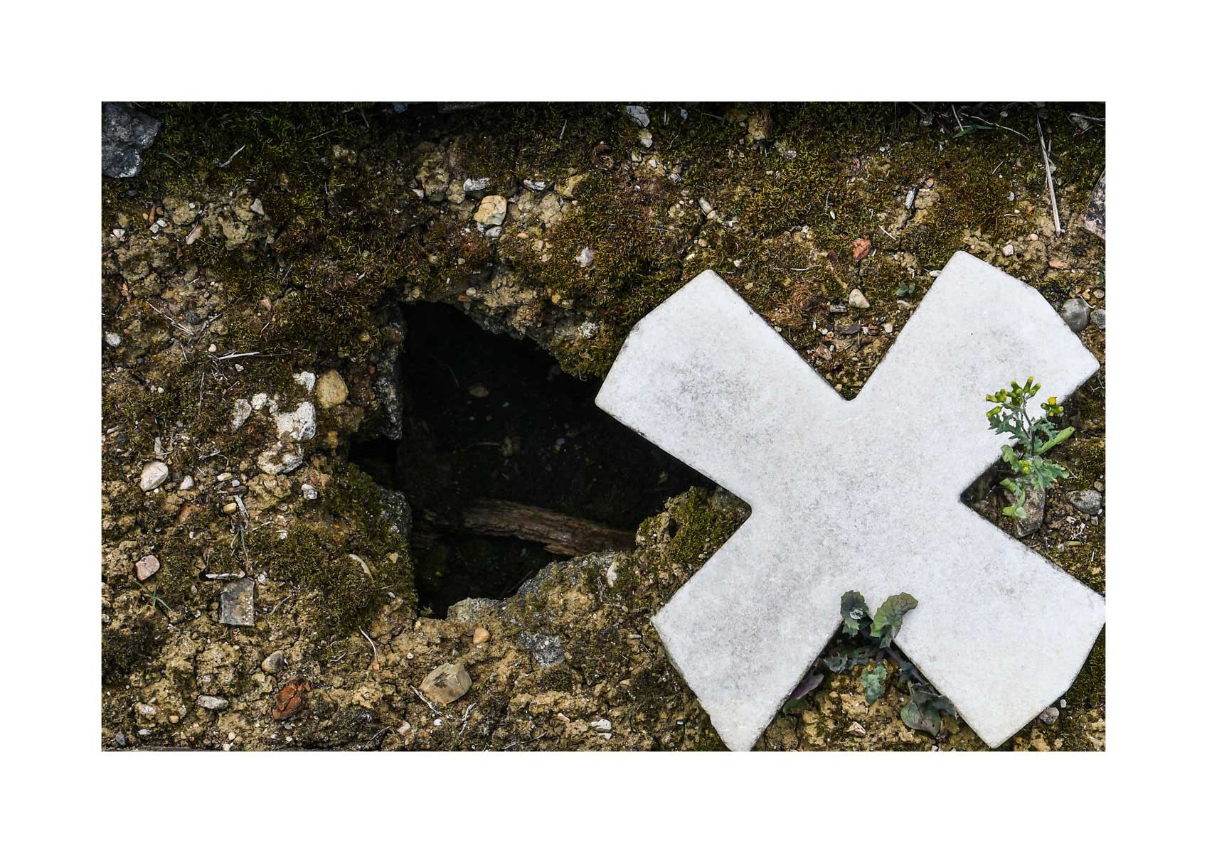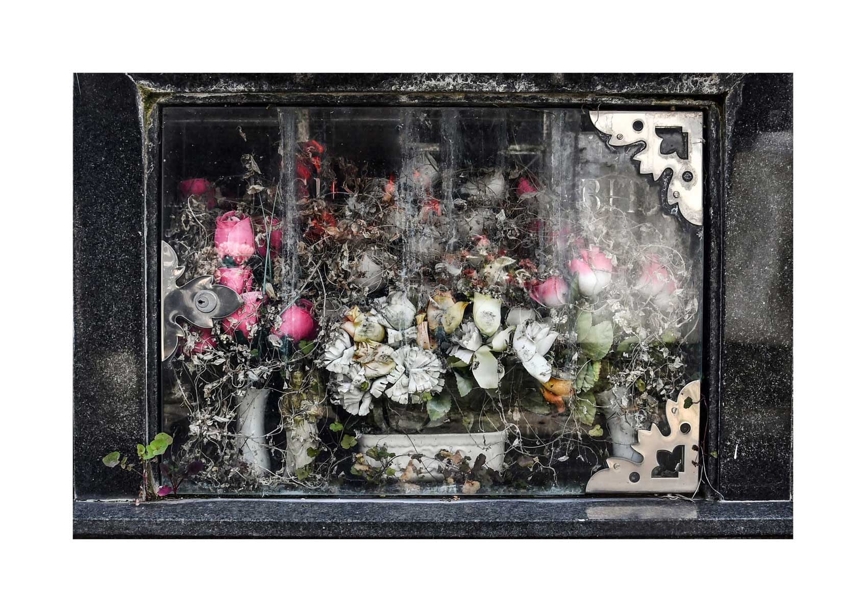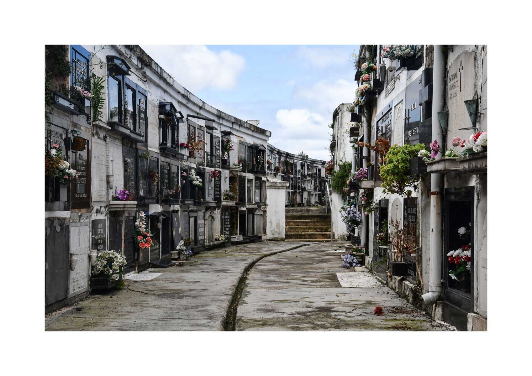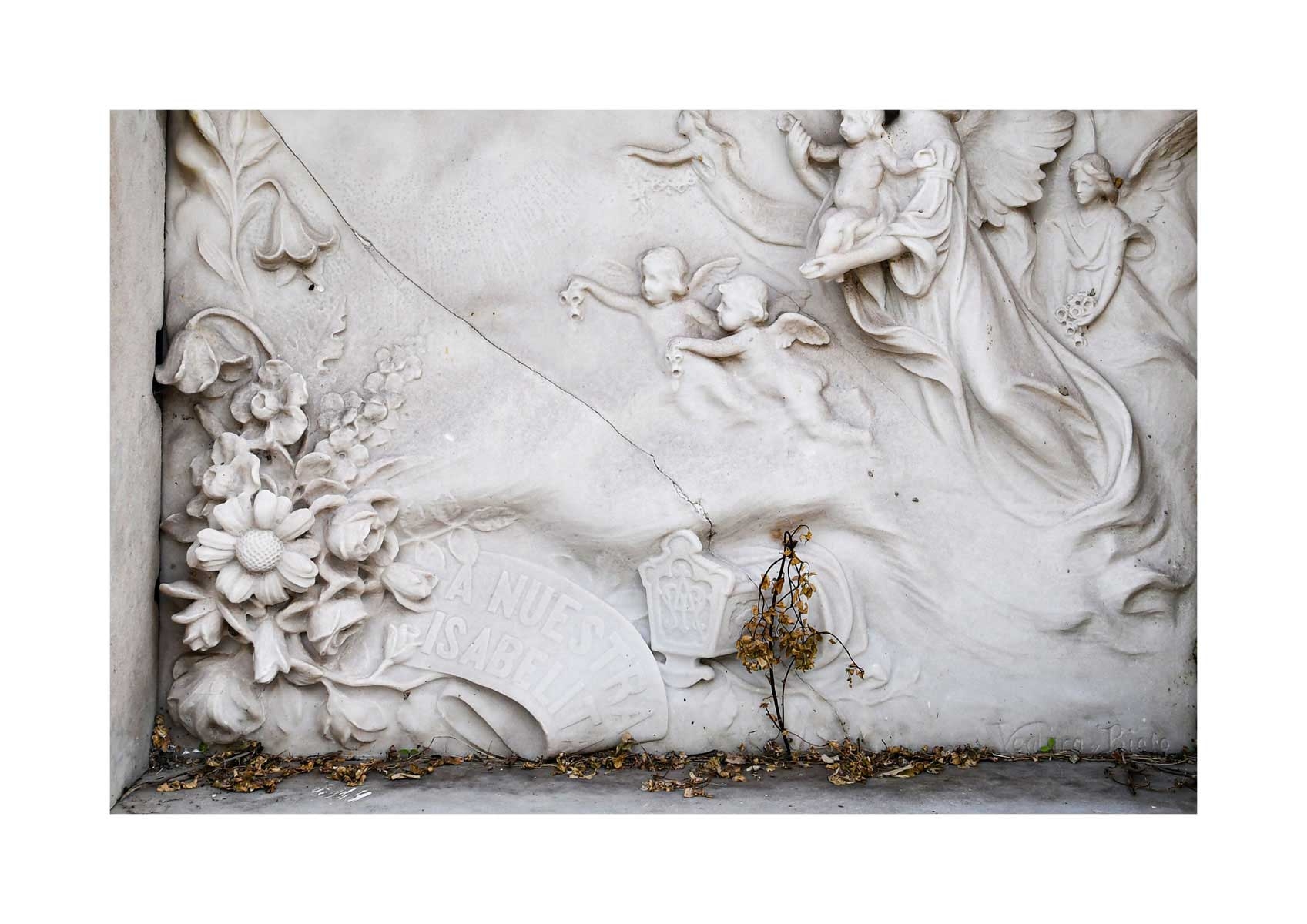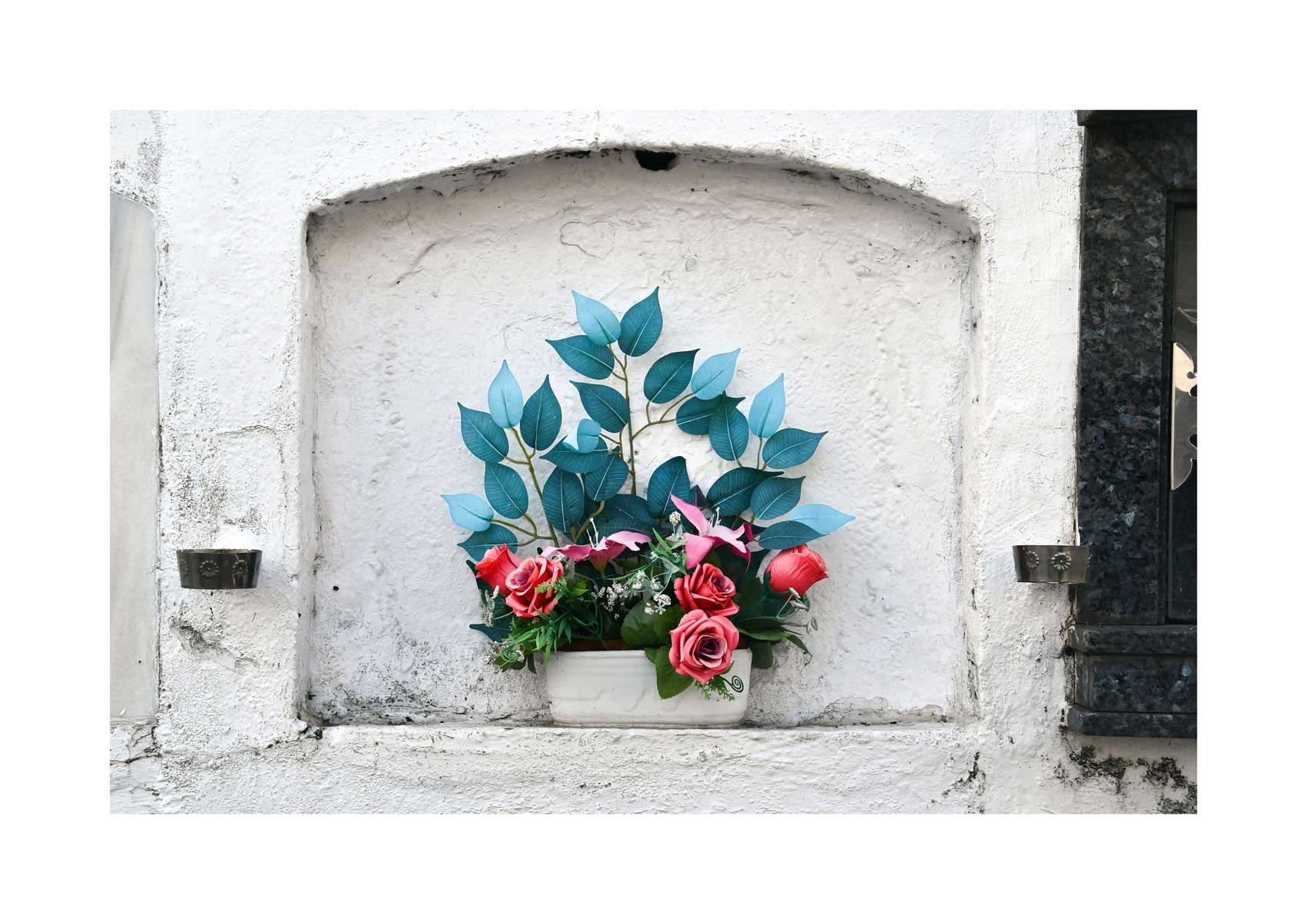 En Propiedad, el artista convierte la palabra grabada en los nichos de un cementerio en un eco de la crisis contemporánea. A través de la repetición del término “propiedad”, la serie revela la ironía de una sociedad que garantiza a los muertos lo que niega a los vivos: un lugar propio.
